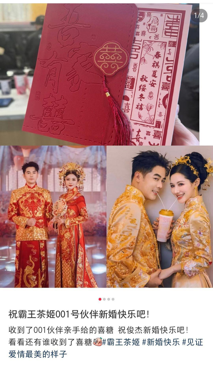 霸王茶姬众员工晒“创始人张俊杰与光伏千金婚礼”喜糖:祝001号伙伴新婚快乐