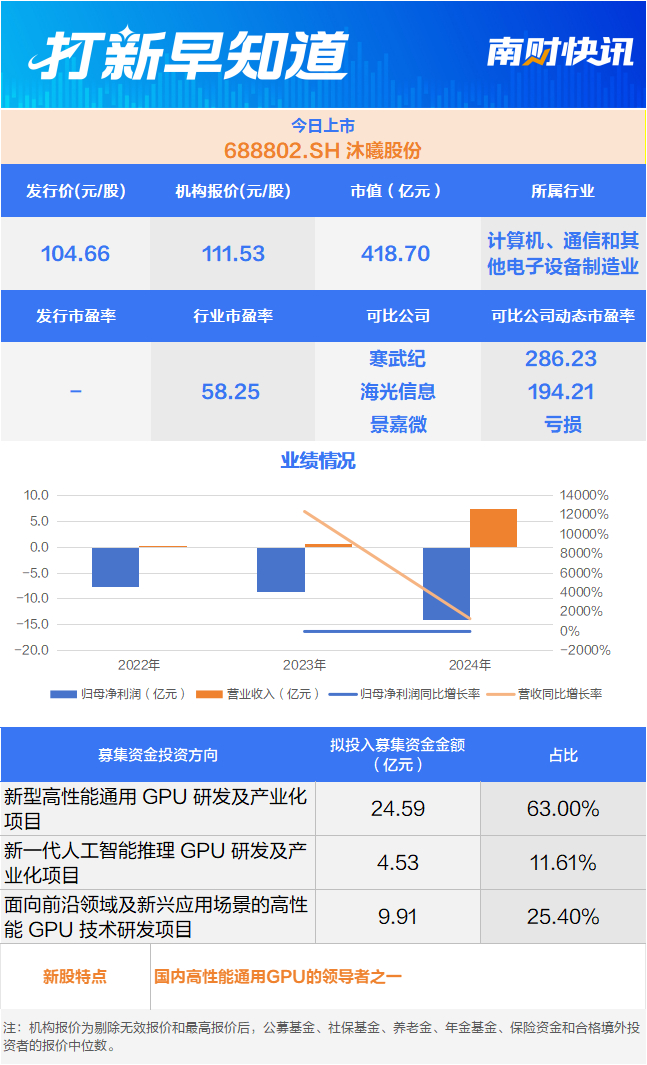 “国产GPU第二股”沐曦股份今日上市丨打新早知道
